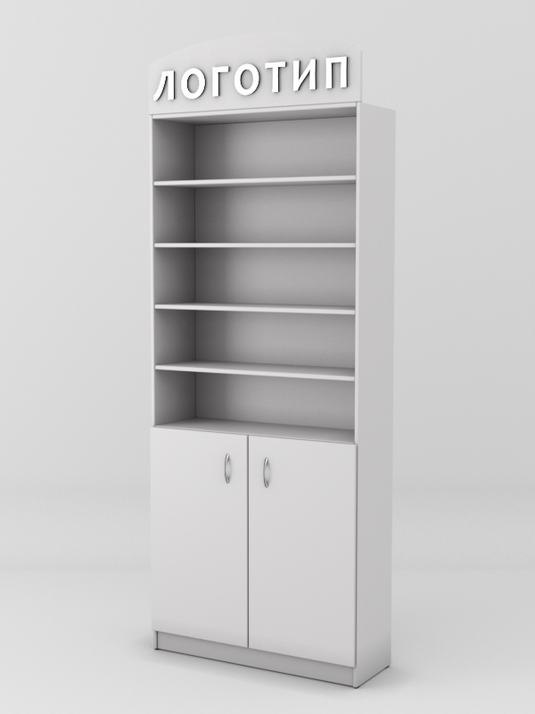Накопитель оборудован распашными дверками. На крыше стеллажа имеется полукруглая панель для размещения логотипа.