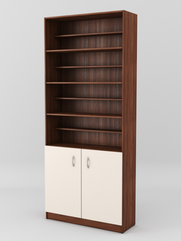 Конструкция состоит из семи полок и накопителя с распашными дверками.
