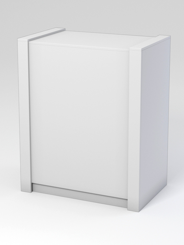 Прилавок №1 имеет спереди полностью закрытую конструкцию. Корпус изготовлен из ЛДСП. Каркас и накладки выполнены в контрастных цветах. Возможно изготовление в другом цветовом сочетании, из списка представленных на сайте цветов.