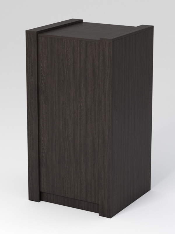 Прилавок №1-600 имеет спереди полностью закрытую конструкцию. Корпус изготовлен из ЛДСП. Каркас и накладки выполнены в контрастных цветах. Возможно изготовление в другом цветовом сочетании, из списка представленных на сайте цветов.