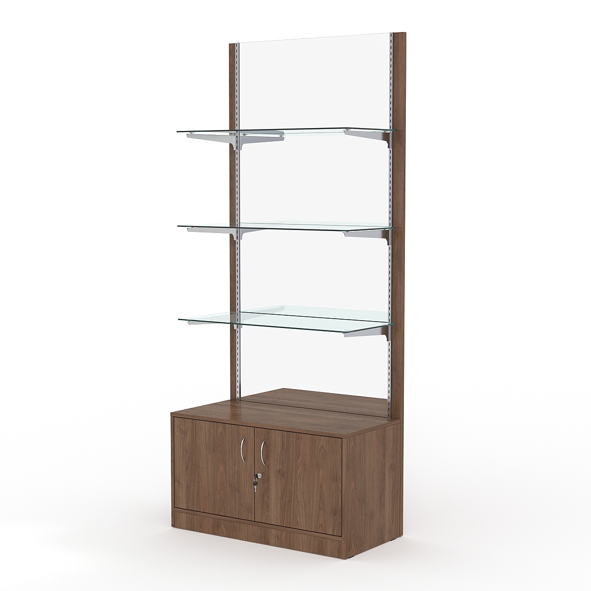 Стеллажи серии Астерия предназначены для размещения непродовольственной категории товаров, таких как парфюмерия, одежда, обувь. Деревянные панели в сочетании со стеклянными полками производят впечатление солидности и основательности, вызывая у покупателя невольное уважение к продаваемому товару.