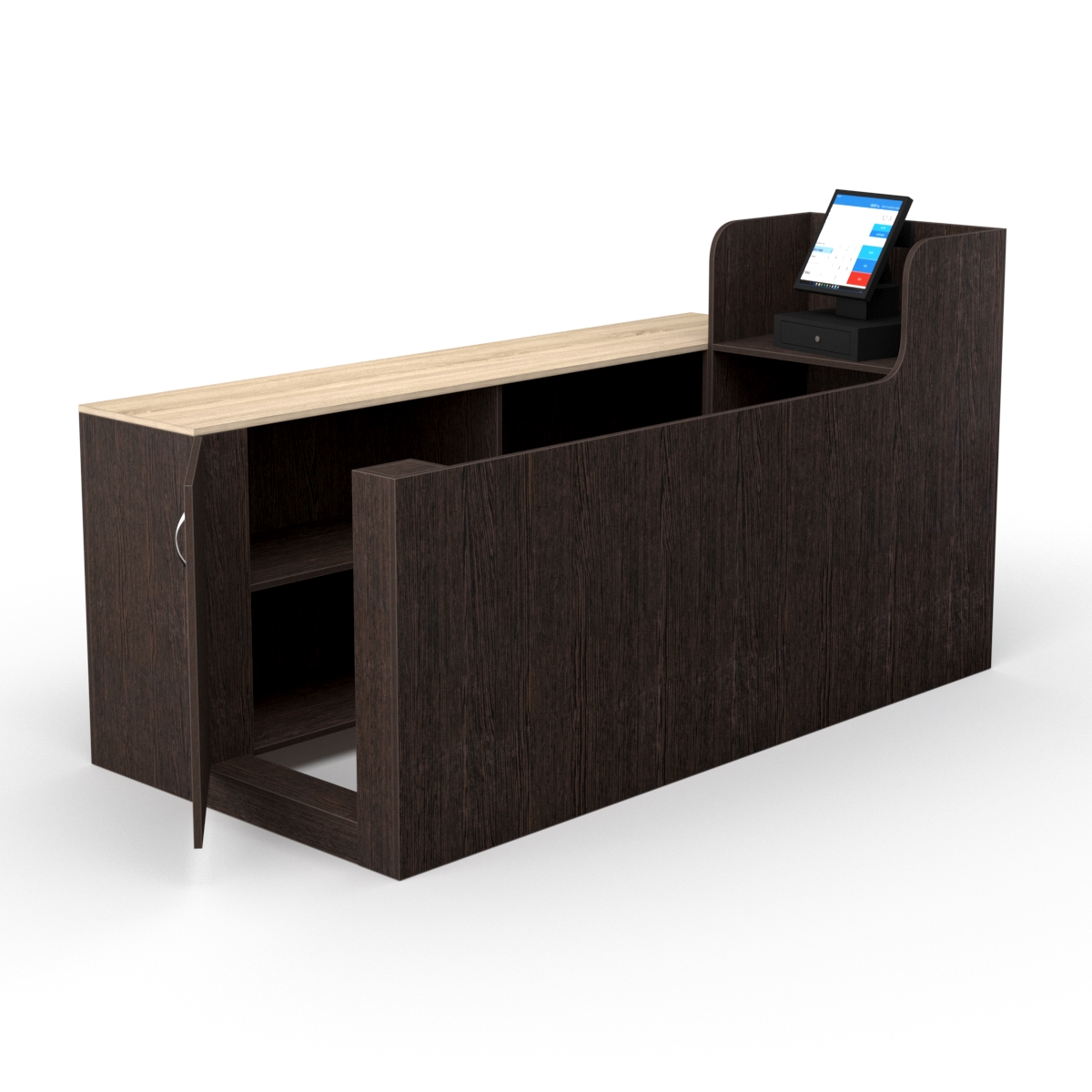 Данное оборудование подойдет не только магазинам розничной торговли. Такой стол можно использовать как стойку ресепшен администратора в отель.