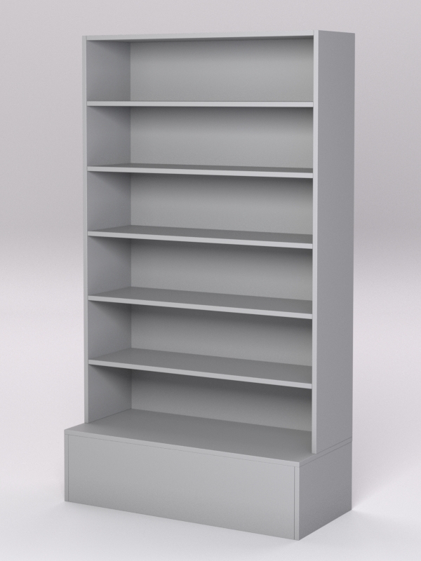 Конструкция состоит из подиума и четырех полок. Каркас выполнен из ЛДСП. Цвет подбирается в вариантах стандарт и на заказ.