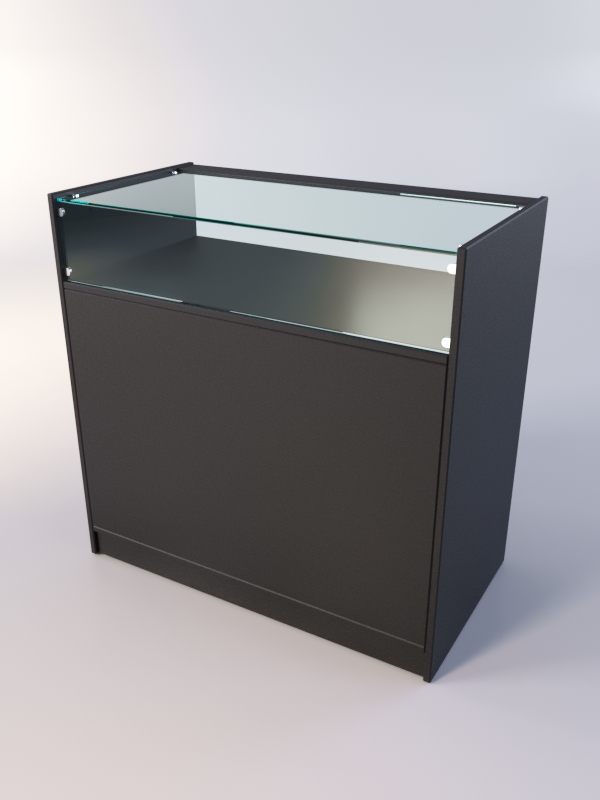 С обратной стороны прилавка расположены дверки, закрываются на замок, посередине предусмотрена полка. Высота стеклянной части 150мм.