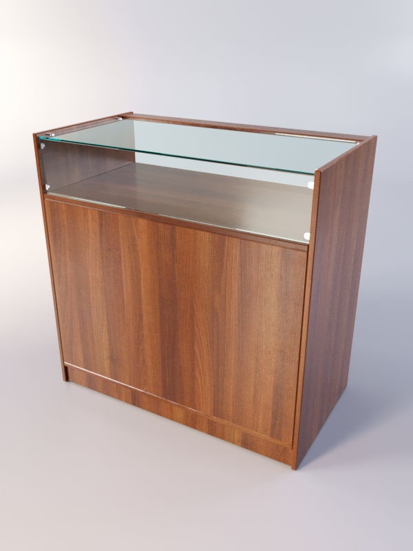 С обратной стороны прилавка расположены дверки, закрываются на замок, посередине предусмотрена полка. Высота стеклянной части 150мм.