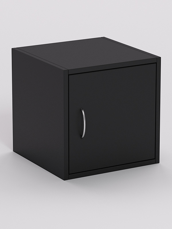 Стеллаж представляет собой закрытый шкаф с распашной дверью. Дверь служит декоративным элементом, изготовлена из материала другого цвета. Каркас шкафа выполнен из ЛДСП. Цвет каркаса возможен в семи вариантах.