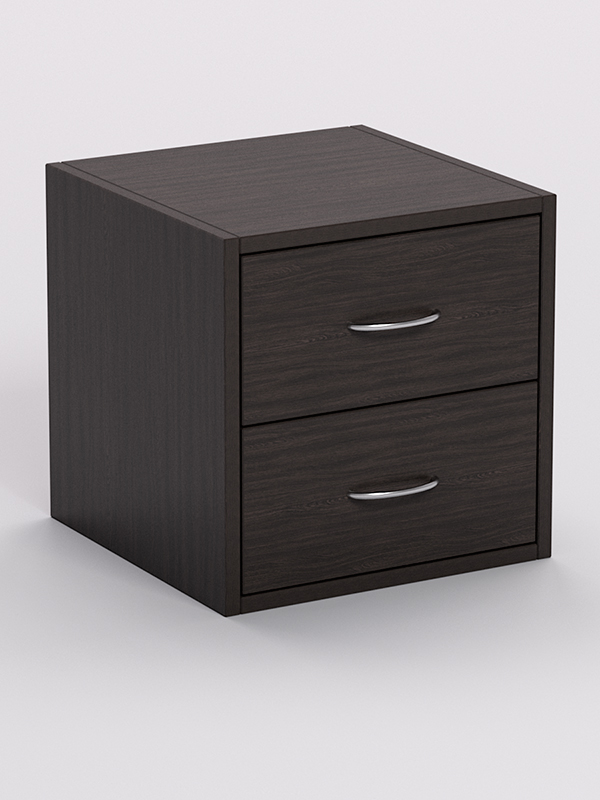 Стеллаж представляет собой квадратный шкаф с двумя выдвижными ящиками. Цвет ящиков отличается от цвета основной конструкции, благодаря чему стеллаж выглядит более эффектно. Каркас выполнен из ЛДСП. Цвет каркаса возможен в семи вариантах.