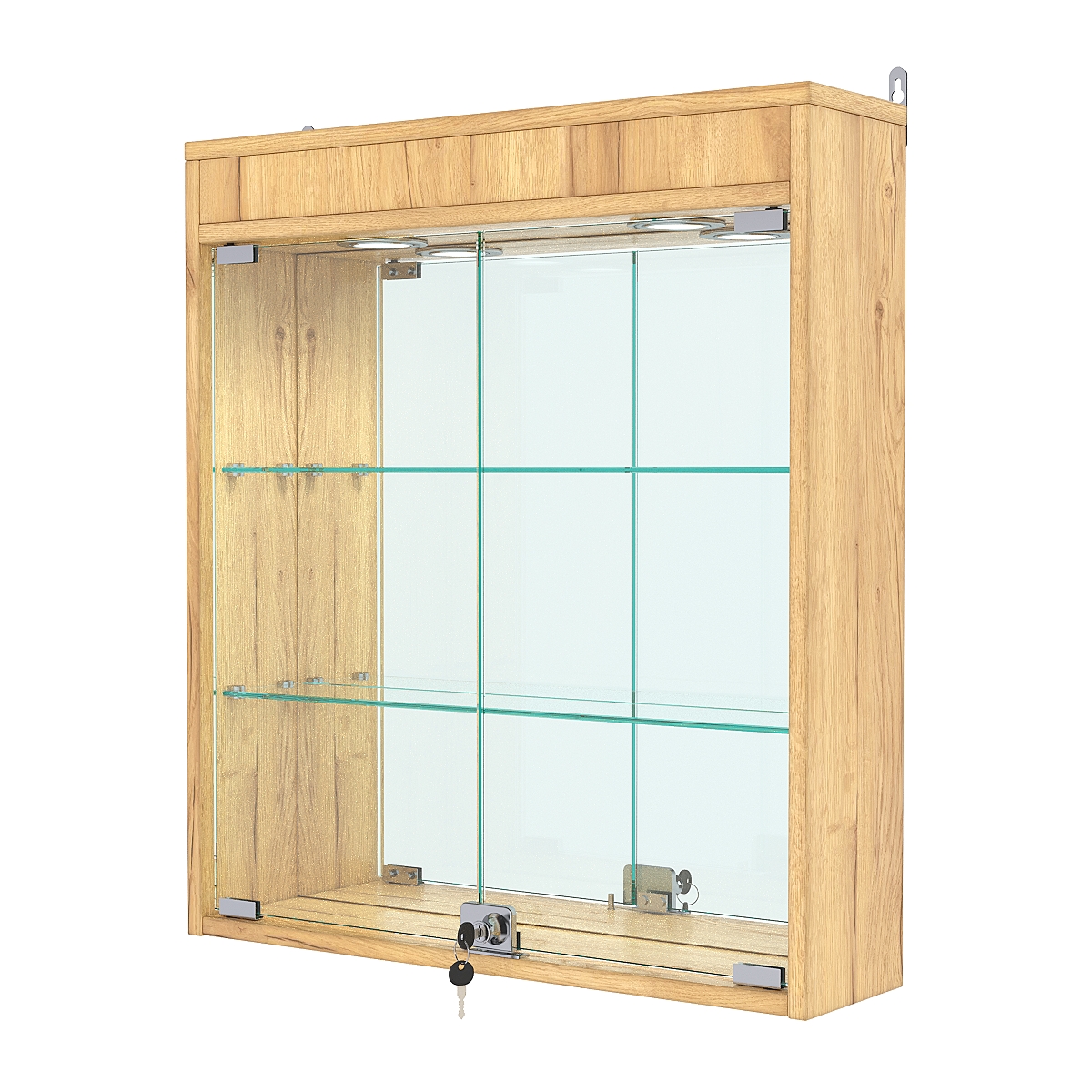 Витрина настенная №1-4А с зеркалом и подсветкой, Дуб Золотистый