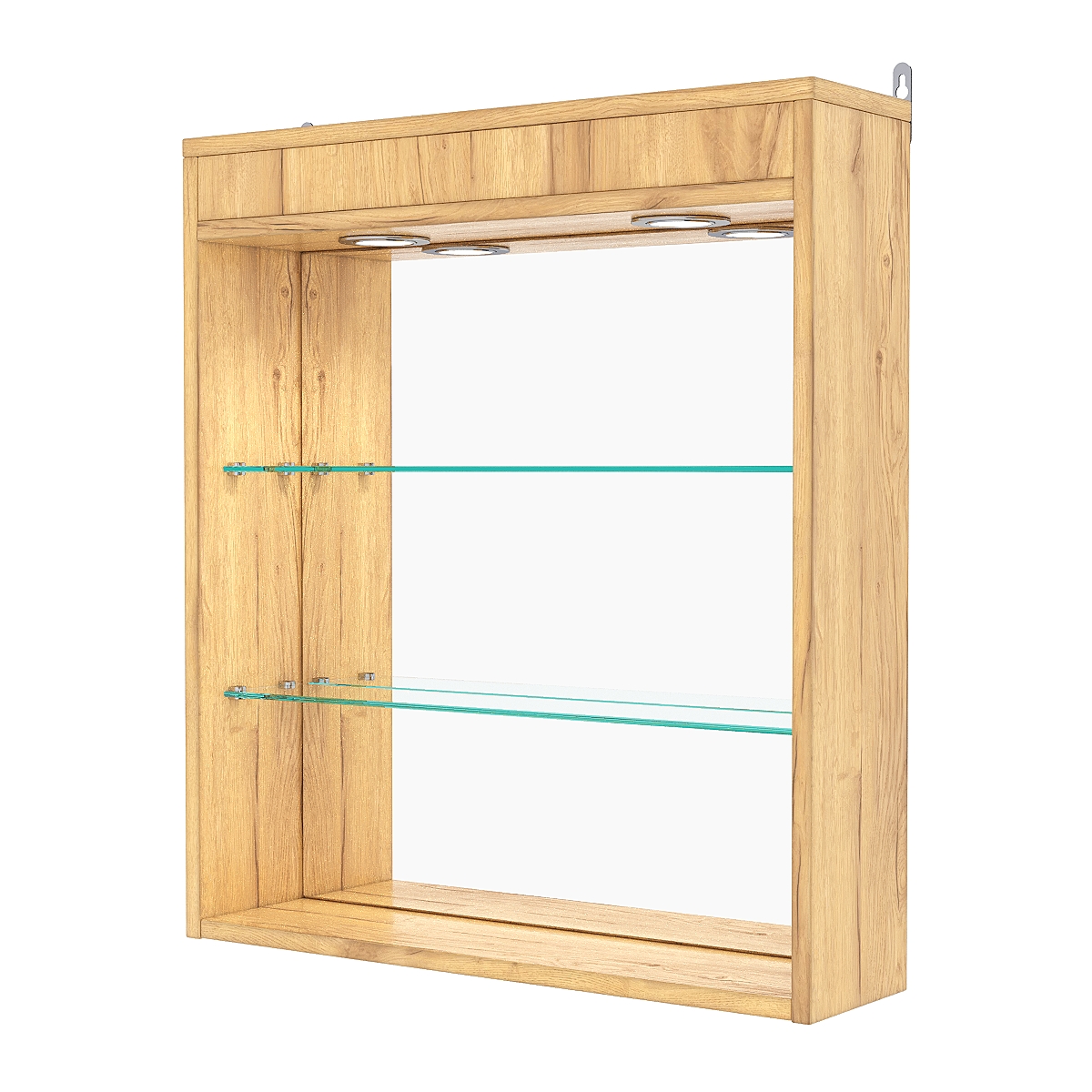 Кол-во полок из стекла 5 мм: 2 шт., расстояние между которыми 185 мм, глубина 97 мм;