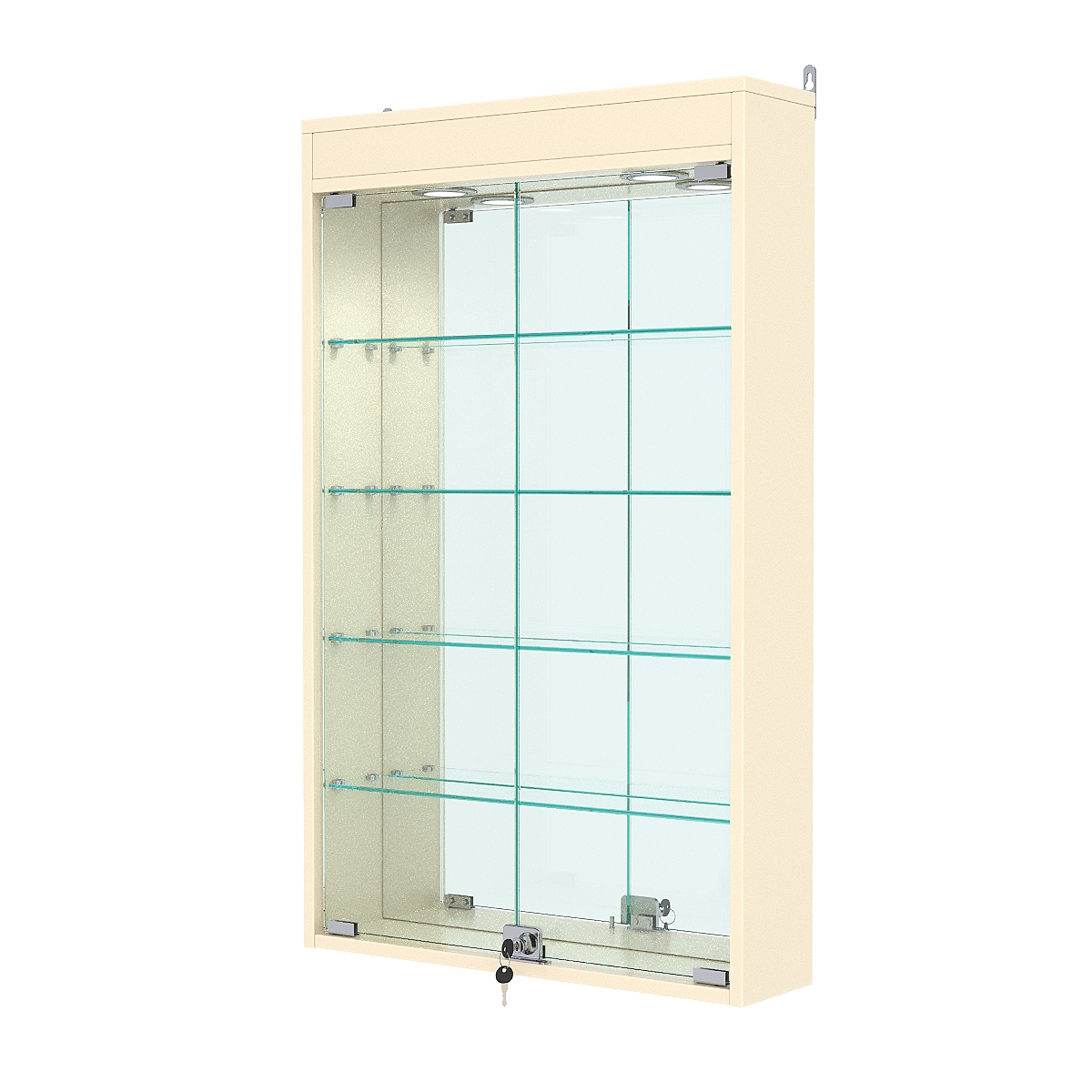 Витрина настенная №2-4А с зеркалом и с подсветкой, Крем Вайс