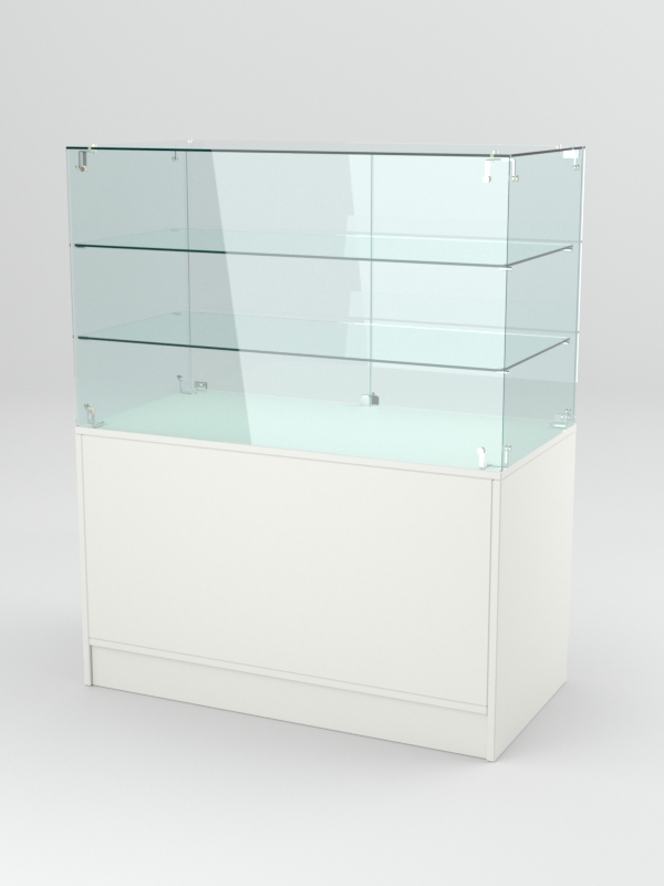Прилавок состоит из закрытой стеклянной витрины и накопителя. Внутри витрины имеются две стеклянные полки. Со стороны продавца витрина оборудована двумя дверками. Нижнюю часть прилавка занимает накопитель с распашными дверками, открывающимися со стороны продавца. Двери витрины и накопителя закрываются на ключ.