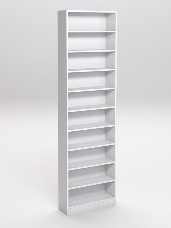 Каркас стеллажа выполнен из ДСП. Для стеллажей данной серии мы использовали материалы белого и желтого цветов. Однако можно выбрать другое цветовое сочетание из набора цветов, представленных на нашем сайте.