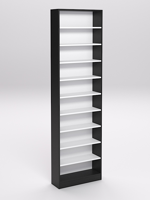 Стеллаж Сота предназначен для выкладки мелкого товара — сотовых телефонов и аксессуаров. Стеллаж представляет собой открытую конструкцию с задней стенкой и 9 узкими полками.