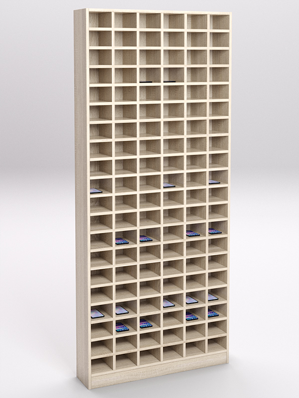 Стеллажи серии Сота предназначены для экспозиции товаров небольших размеров, например, мобильных телефонов, планшетов, комплектующих. 114 ячеек.