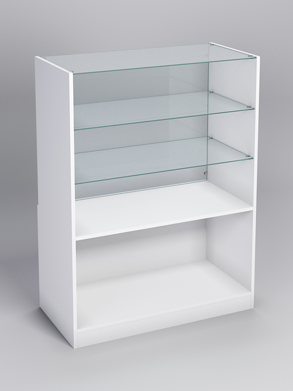 Прилавок пригодится для продажи товаров в магазине или другой торговой точке. Стеклянная столешница и стеклянные полки на прилавке используется для улучшения внешнего вида и создания ощущения лёгкости и воздушности.