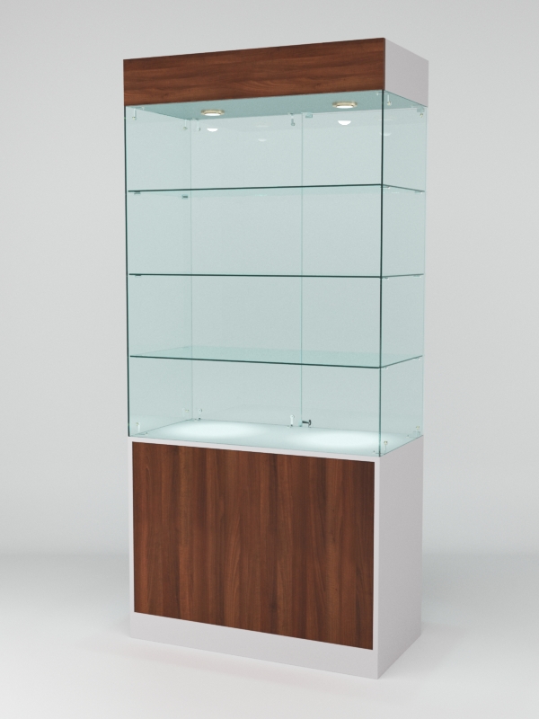 - Специальное освещение: Внутри витрины предусмотрено специальное освещение, которое отлично подчёркивает представленные товары.