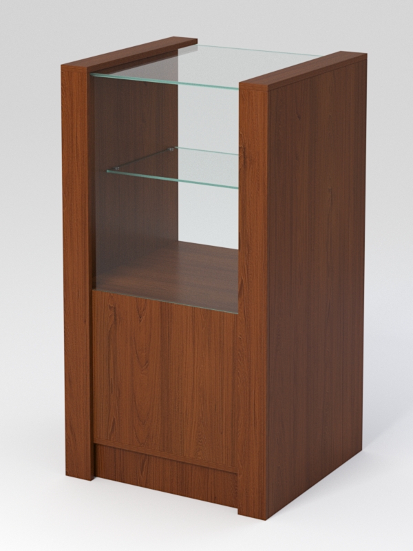 Прилавок №3-600 состоит из витрины и накопителя. Витрина содержит одну стеклянную полку. Доступ к витрине расположен со стороны продавца. Корпус изготовлен из ЛДСП. Каркас и накладки выполнены в контрастных цветах. Возможно изготовление в другом цветовом сочетании, из списка представленных на сайте цветов.