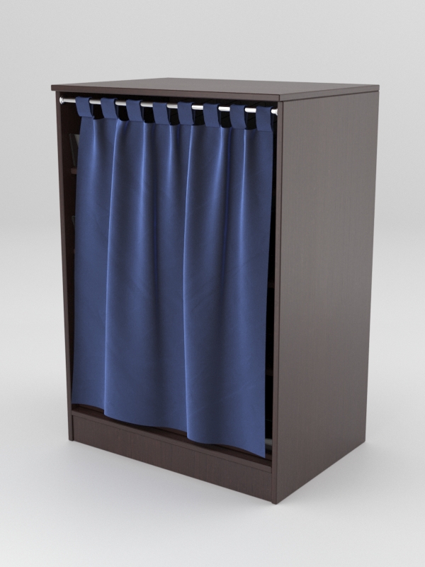 Прилавок для продажи табачных изделий. Конструкция представляет собой открытый шкаф. В целях предупреждения пропаганды курения шкаф снабжен шторой, скрывающей содержимое. Штора крепится на металлической штанге. Внутри располагаются четыре наклонные полки. Полки оборудованы передними ограничителями для предотвращения падения товаров. Для сортировки продукции по маркам на каждой полке имеется шесть разделителей.