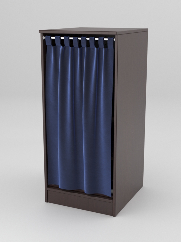 Прилавок для продажи табачных изделий. Конструкция представляет собой открытый шкаф. В целях предупреждения пропаганды курения шкаф снабжен шторой, скрывающей содержимое. Штора крепится на металлической штанге. Внутри располагаются четыре наклонные полки. Полки оборудованы передними ограничителями для предотвращения падения товаров. Для сортировки продукции по маркам на каждой полке имеется три разделителя.