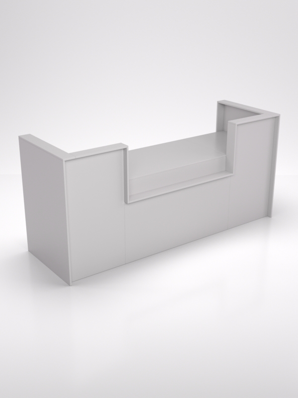 Стильная эргономичная стойка предназначена для полноценной офисной работы. Конструкция оборудована большим количеством тумб и полок, где можно расположить офисную технику и другой служебный инвентарь. Внутреннее оборудование полностью скрыто от взгляда посетителя. Приемная зона представлена горизонтальной панелью.