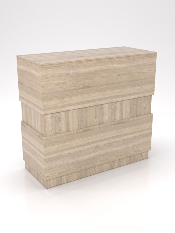 Каркас стойки выполнен из ЛДСП. Цвет основной конструкции — черный (Дуб Венге), декоративные накладки имеют бежевый цвет (Дуб Сонома).