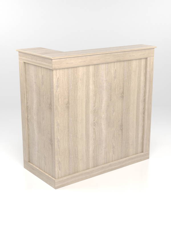 Угловой ресепшн. Угол расположен справа от администратора. Небольшая стенка позволяет выделить пространство для размещения офисной техники, например, монитора компьютера.