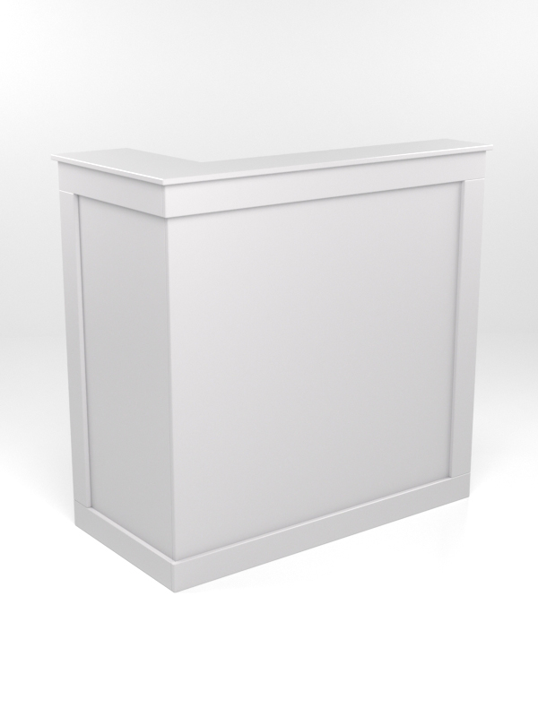 Угловой ресепшн. Угол расположен справа от администратора. Небольшая стенка позволяет выделить пространство для размещения офисной техники, например, монитора компьютера.