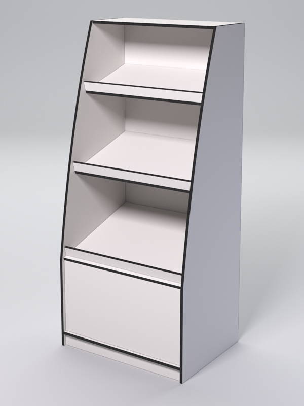 Стеллаж предназначен для выкладки хлебобулочных изделий, выпечки. Представляет собой пристенную конструкцию с тремя наклонными полками.
