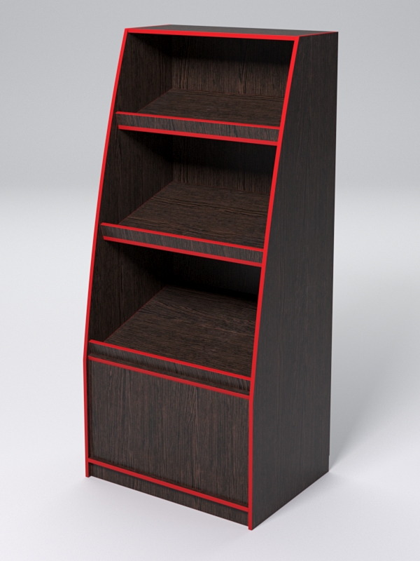 Стеллаж предназначен для выкладки хлебобулочных изделий, выпечки. Представляет собой пристенную конструкцию с тремя наклонными полками.