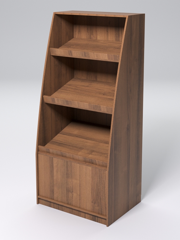 Стеллаж предназначен для выкладки хлебобулочных изделий, выпечки. Представляет собой пристенную конструкцию с тремя наклонными полками.