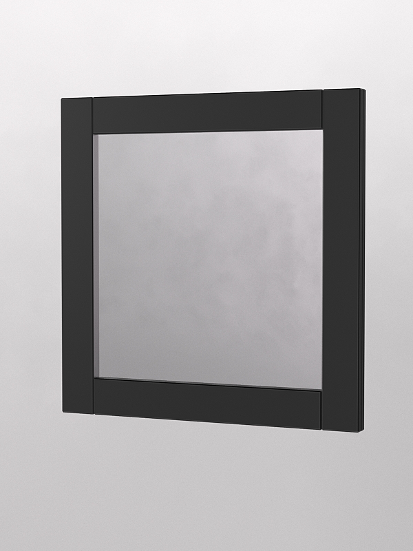 Модель крепится на стену. Зеркало имеет квадратную форму и обрамление из ЛДСП. Цвет рамы представлен в семи стандартных вариантах. Другие цвета подбираются в палитре на заказ.