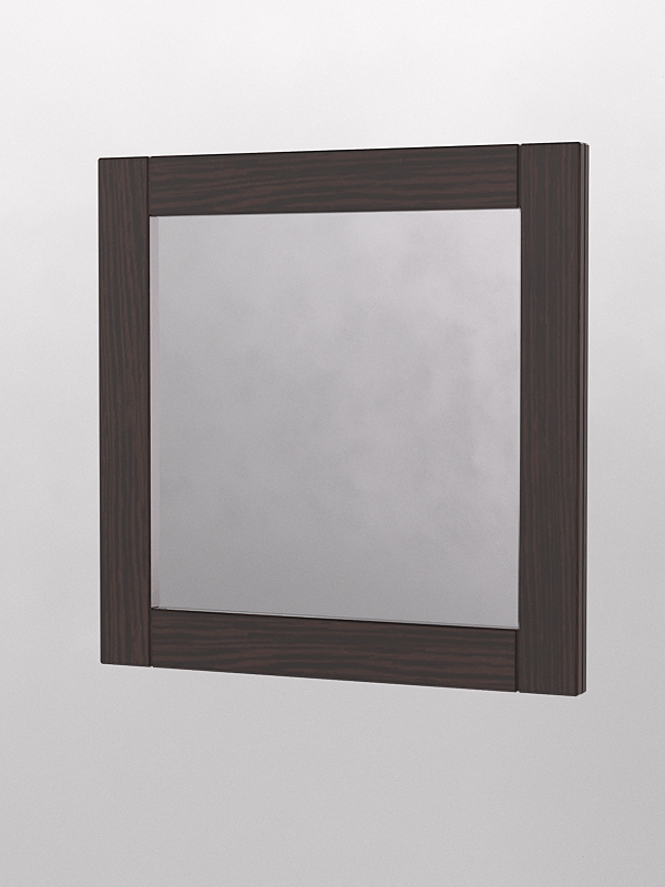 Модель крепится на стену. Зеркало имеет квадратную форму и обрамление из ЛДСП. Цвет рамы представлен в семи стандартных вариантах. Другие цвета подбираются в палитре на заказ.