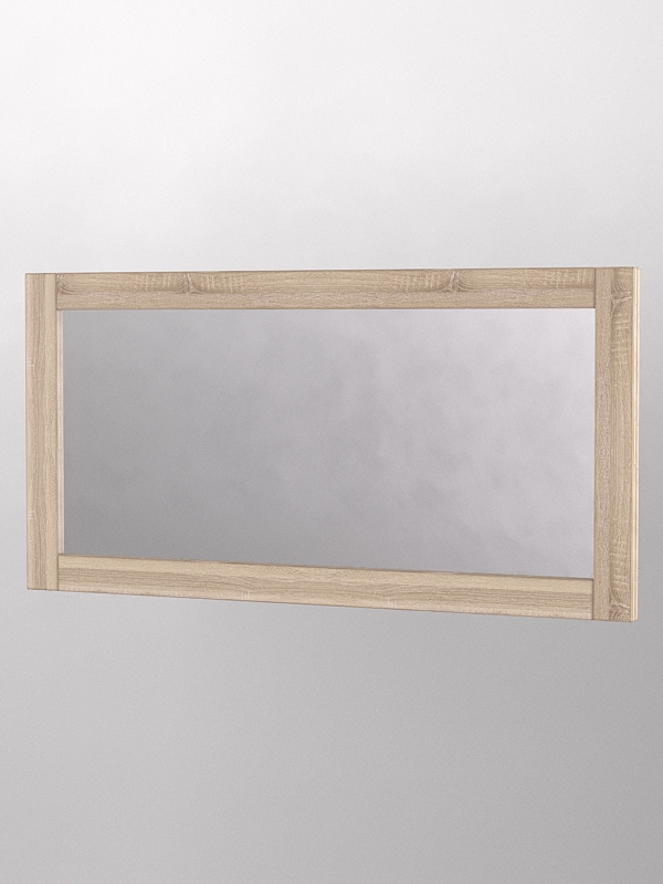 Модель крепится на стену. Горизонтальное зеркало имеет прямоугольную форму и обрамление из ЛДСП. Цвет рамы представлен в семи стандартных вариантах. Другие цвета подбираются в палитре на заказ.