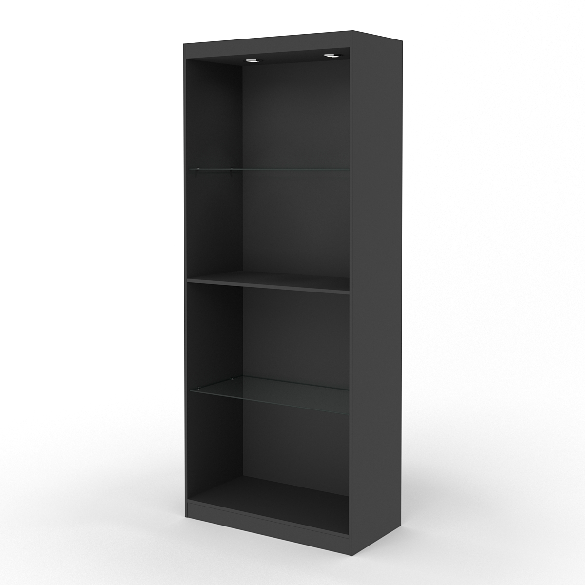 Стеллаж в верхней секции открытый.
