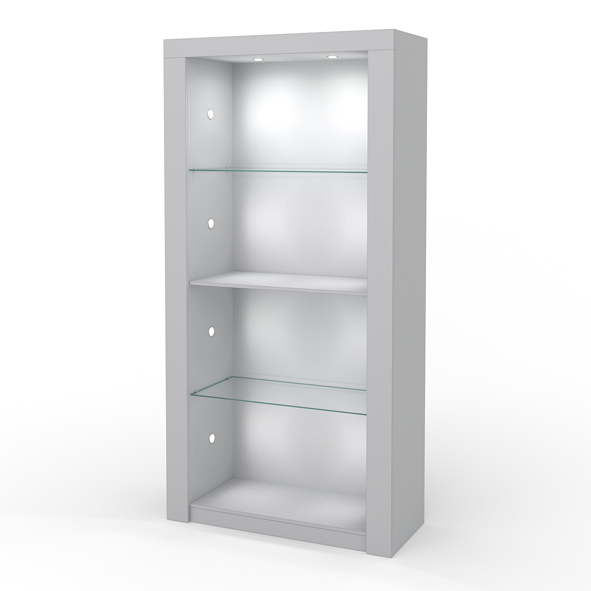Стеллаж с тремя полками может пригодиться магазинам косметики, сувениров, ювелирных изделий и другим магазинам, где важно предоставить покупателям возможность рассмотреть товар со всех сторон.