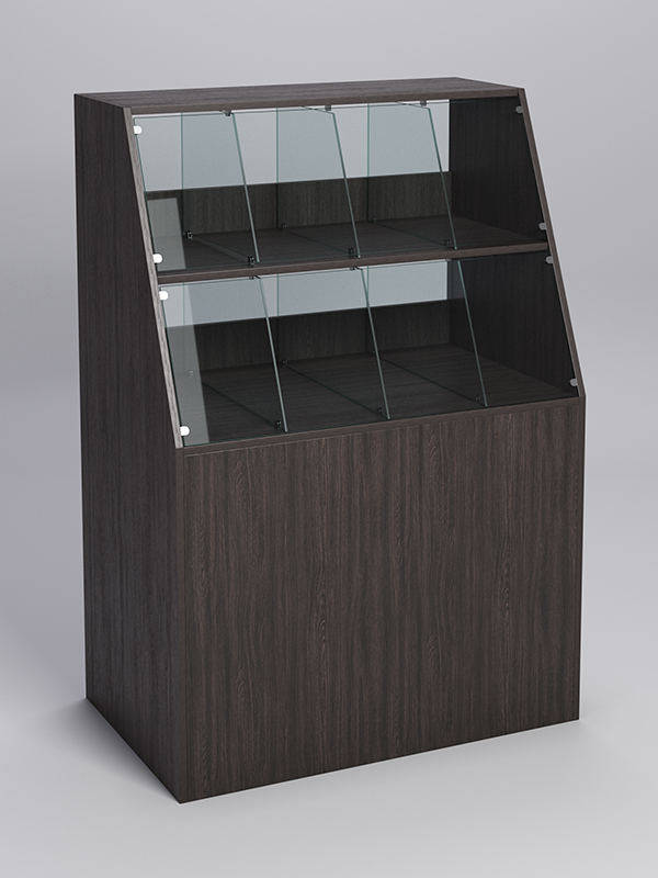 Прилавок для продажи конфет и орехов отлично впишется в интерьер кондитерского магазина. Данную конструкцию можно использовать отдельно или как часть островной системы. Витринная часть состоящая из 8 ячеек, выполнена из ЛДСП, ячейки разграничены высокопрочныи стеклом. Прилавок имеет два уровня для размещения товара.