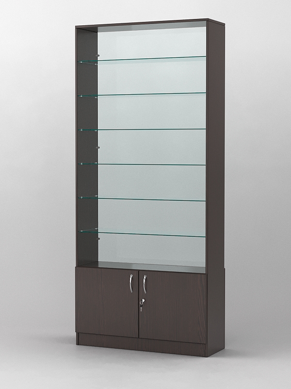 Задняя стенка стеклянная. Такая деталь помогает создать более привлекательный вид витрины и улучшает ее функциональность.
