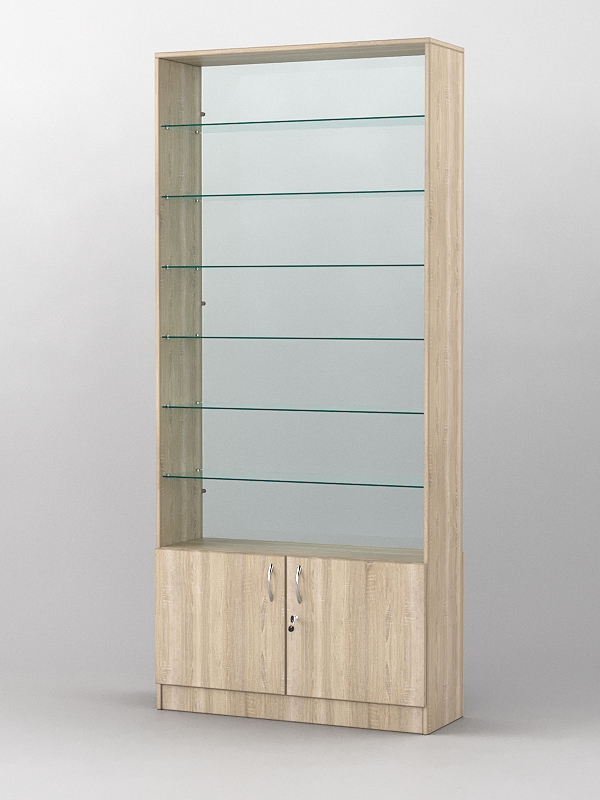 Задняя стенка стеклянная. Такая деталь помогает создать более привлекательный вид витрины и улучшает ее функциональность.