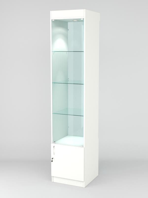 Витрина АСТРА №2 (с дверкой, задняя стенка — стекло), Белый