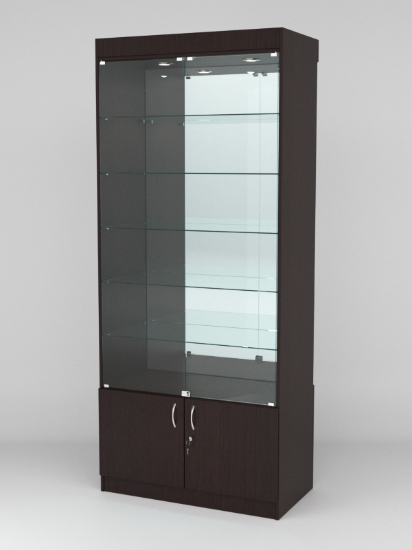 Главная особенность модели — это стеклянные полки. Их целых пять, они прозрачные, благодаря чему можно легко увидеть все, что на них стоит. Это очень удобно, для того, чтобы показать покупателям все свои товары!