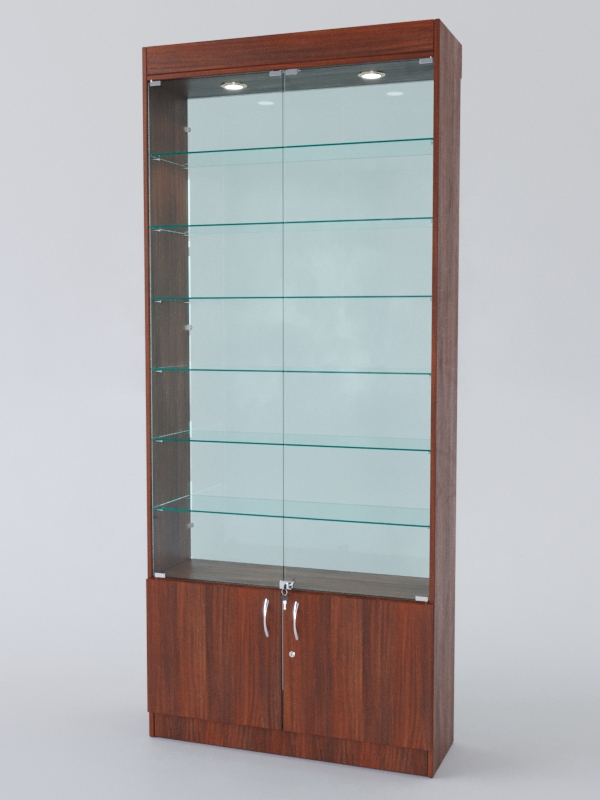 Задняя стенка стеклянная. Такая деталь помогает создать более привлекательный вид витрины и улучшает ее функциональность.