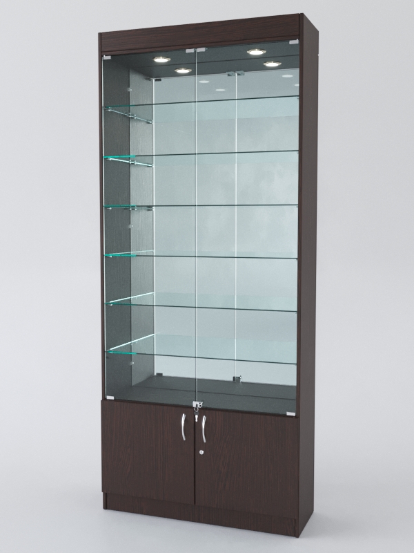 Витрина АСТРА №32 (с дверками, задняя стенка — зеркало), Дуб Венге