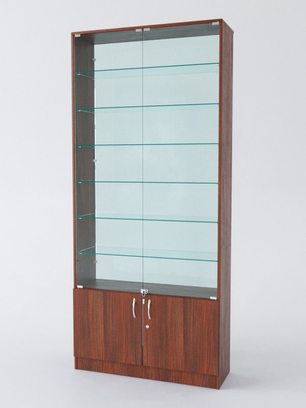Витрина АСТРА №33 (с дверками, задняя стенка — стекло), Орех