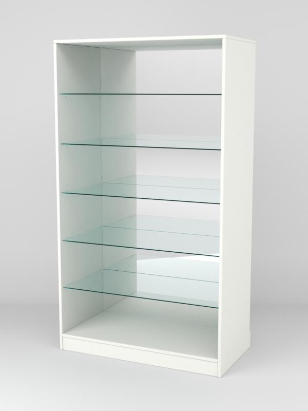 Главная особенность модели — это стеклянные полки. Их целых пять, и они прозрачные, благодаря чему можно легко увидеть все, что на них стоит. Это очень удобно, для того, чтобы показать покупателям все свои товары!