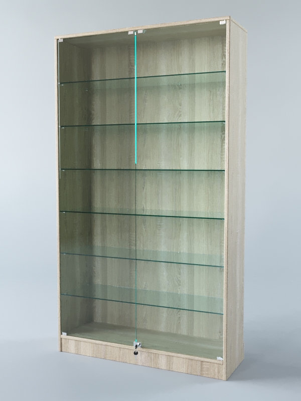 Главная особенность модели — это стеклянные полки. Их шесть, они прозрачные, благодаря чему можно легко увидеть все, что на них стоит. Это очень удобно, для того, чтобы показать покупателям все свои товары!