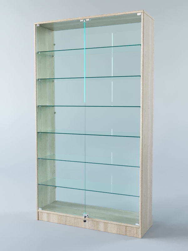 Задняя стенка стеклянная. Такая деталь помогает создать более привлекательный вид витрины и улучшает ее функциональность.