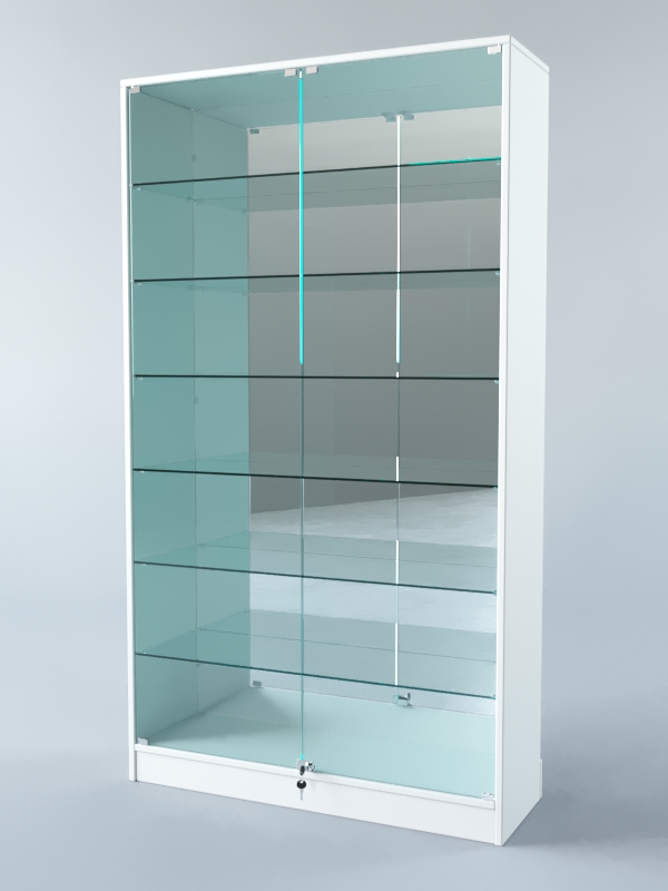 Главная особенность модели — это стеклянные полки. Их шесть,они прозрачные, благодаря чему можно легко увидеть все, что на них стоит. Это очень удобно, для того, чтобы показать покупателям все свои товары!