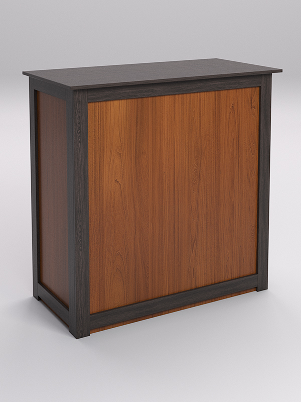 Конструкция имеет закрытый фасад. Просторная столешница позволяет, как готовить напитки, так и размещать посетителей. С внутренней стороны стойки находится четыре отсека для хранения напитков и инвентаря.