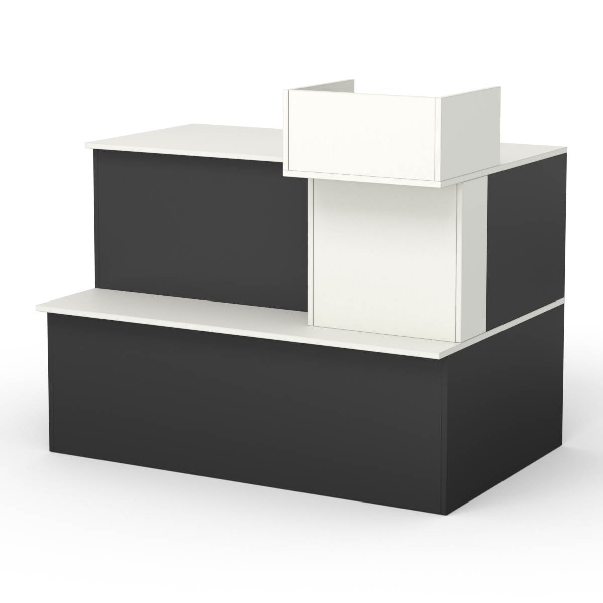 Кассовый стол имеет широкое применение в магазинах одежды, обуви, сумок. За таким столом удобно производить расчет с покупателями, выдавать товары. Стол содержит широкую столешницу, на которой справа расположено отделение для кассового аппарата. Со стороны покупателя имеется просторная полка для сумок. Внутри находится два больших и три малых отделения для хранения товара. Каркас выполнен из ЛДСП. Цвет подбирается в вариантах стандарт и на заказ.