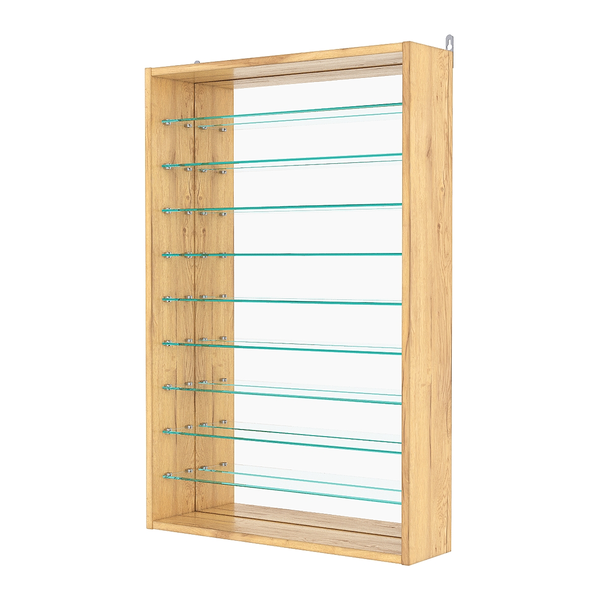 Кол-во полок из стекла 6мм: 9шт, расстояние между которыми 81мм, глубина полок 97мм;